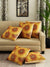 Yellow & Maroon Set of 3 Floral Printed Jute Polyester Square Cushion Covers