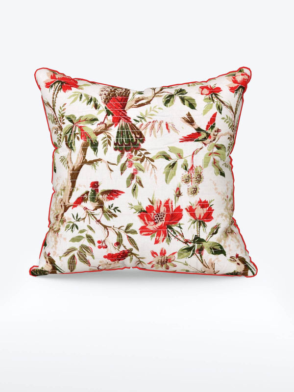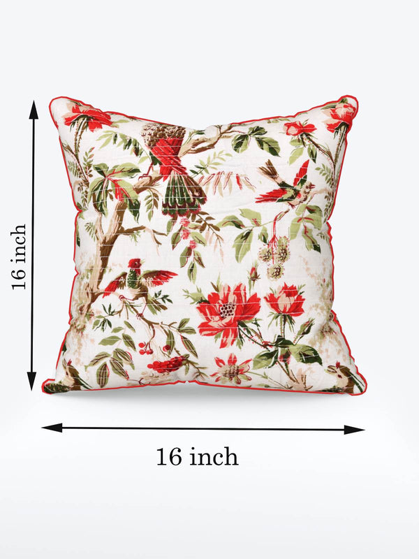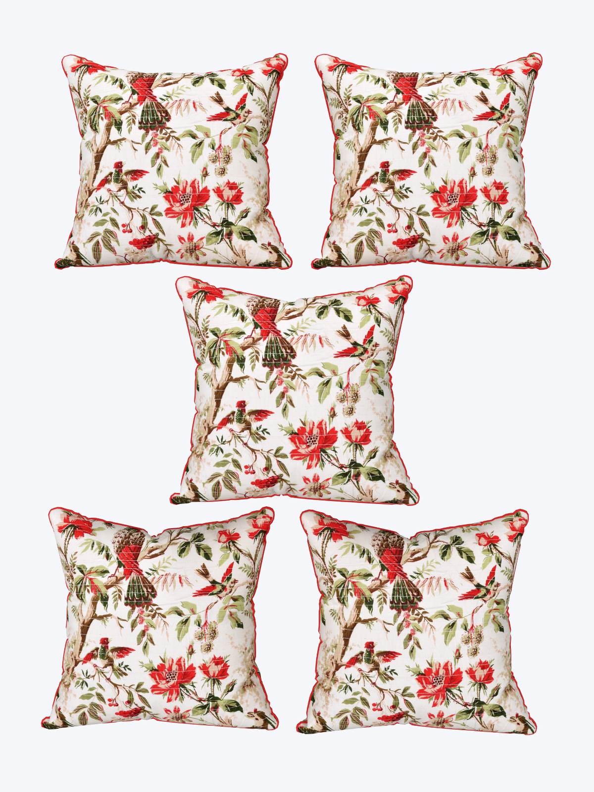 Add charm to your living space with this set of 5 floral printed cushion covers, crafted from soft quilted cotton fabric. Designed for everyday elegance, each cover features a concealed zip and is reversible for dual-side use, and contrast border piping for a refined finish. The timeless floral pattern on a Cream & Red base blends beautifully with both modern and classic décor styles.