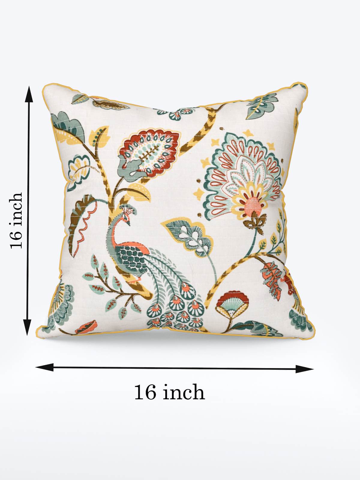 Add charm to your living space with this set of 5 floral printed cushion covers, crafted from soft quilted cotton fabric. Designed for everyday elegance, each cover features a concealed zip and is reversible for dual-side use, and contrast border piping for a refined finish. The timeless floral pattern on a Cream base blends beautifully with both modern and classic décor styles.